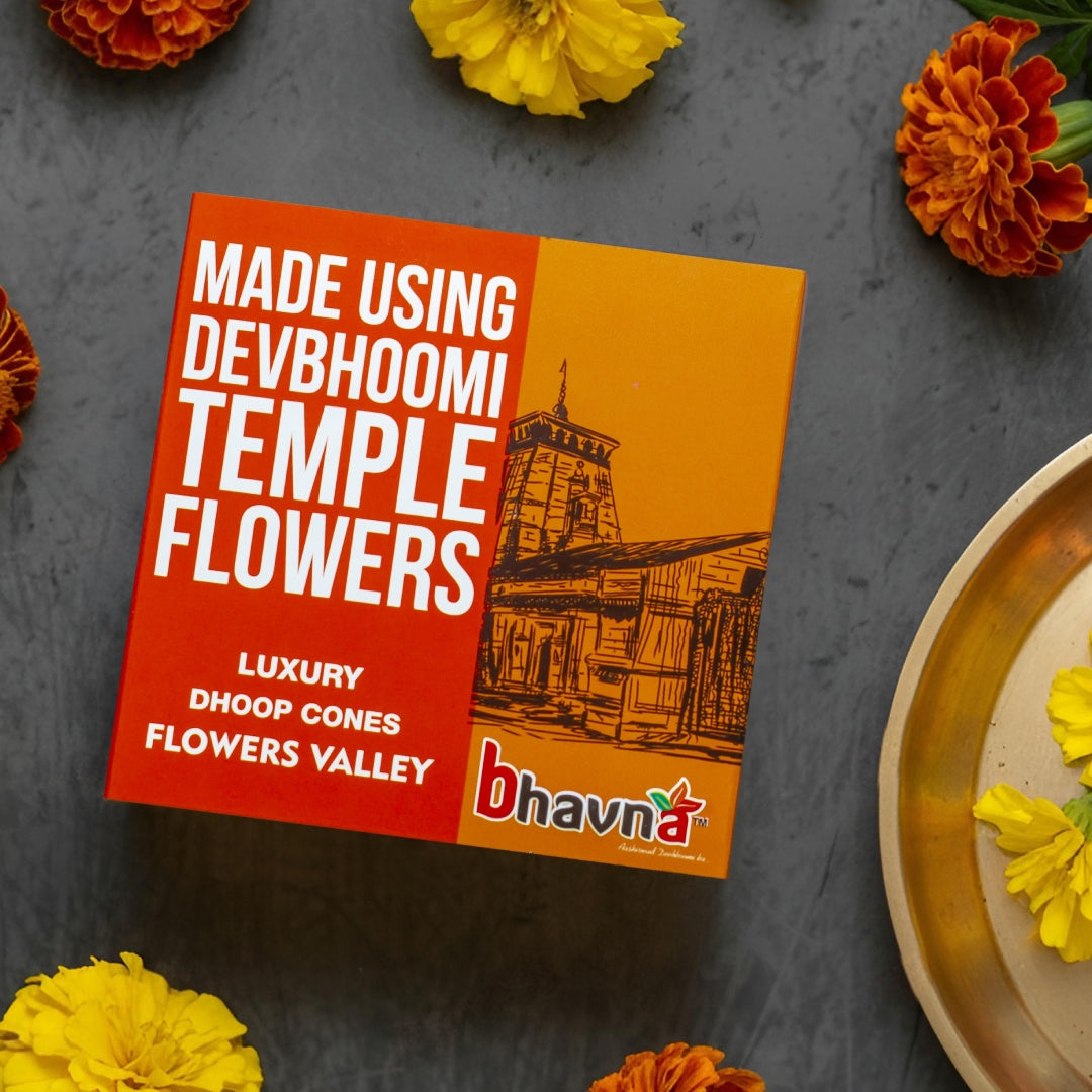 Experience the soothing and uplifting aroma of BHAVNA LUXURY INCENSE CONES – Valley Flowers Fragrance, inspired by the breath-taking Valley of Flowers in Uttarakhand. Crafted from 100% natural ingredients, these premium dhoop cones are charcoal-free, ensuring a safe and clean burn, perfect for daily use during pooja, meditation, yoga, or relaxation rituals. The enchanting mixed floral fragrance captures the essence of blooming alpine meadows, creating a tranquil and harmonious atmosphere that calms the mind, uplifts the spirit, and brings a touch of nature’s serenity into your space. As the fragrant smoke gently fills the air, it purifies the surroundings, eliminates negativity, and enhances positivity, making every moment more peaceful, refreshing, and blissful.