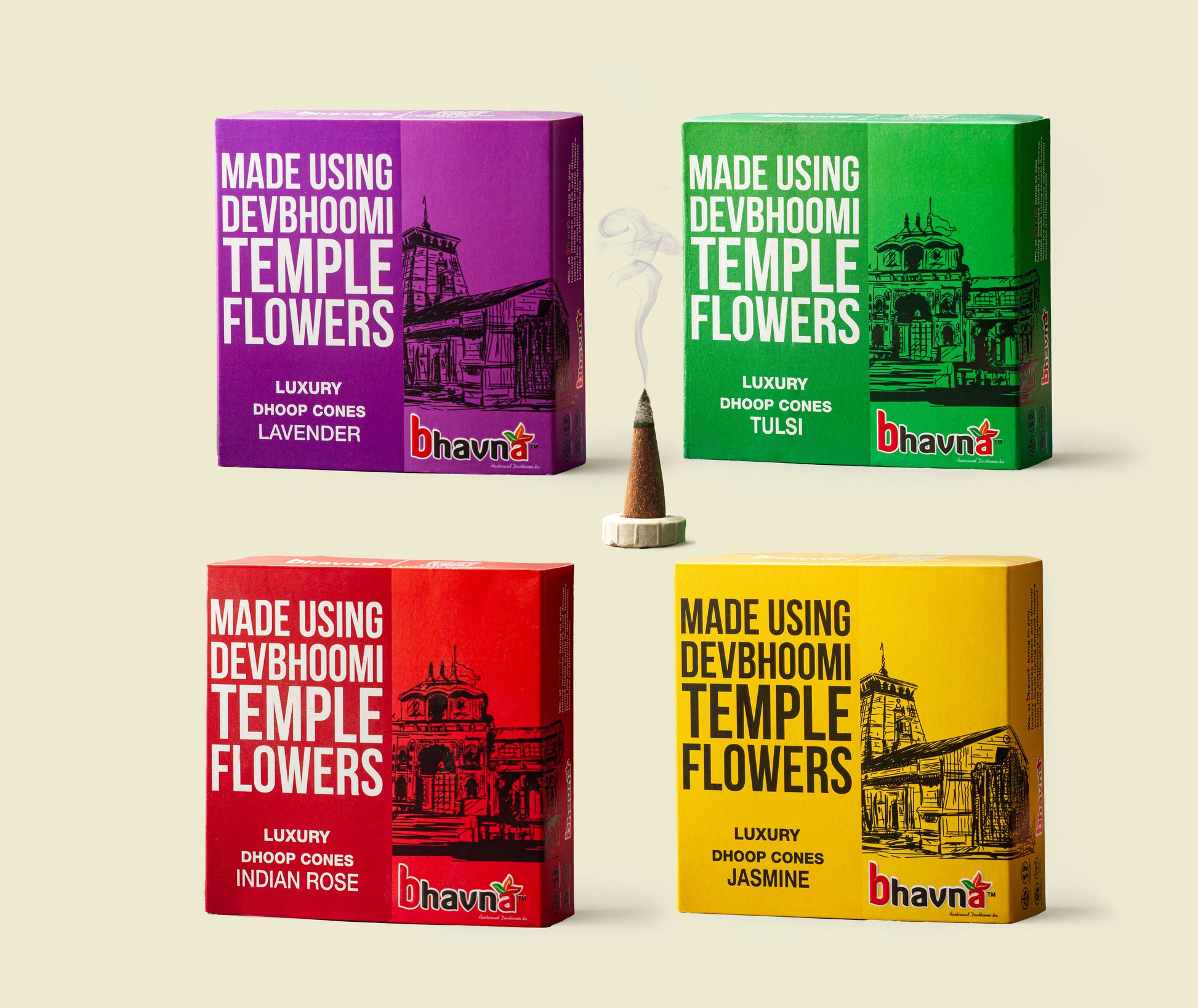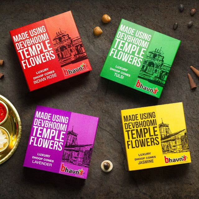 Bhavna Luxury Incense - Kedarnath Combo Pack of 4 offers a delightful blend of natural incense cones in soothing Lavender and Jasmine fragrances. These incense cones are perfect for meditation, relaxation, and spiritual rituals, creating a peaceful and uplifting atmosphere in your home or sacred space. Made with 100% natural ingredients and completely charcoal-free, they ensure a clean, pure, and long-lasting fragrance without any harmful smoke. Whether you’re seeking positivity, or a divine ambiance, this combo pack enhances your daily rituals with its calming and refreshing aroma.